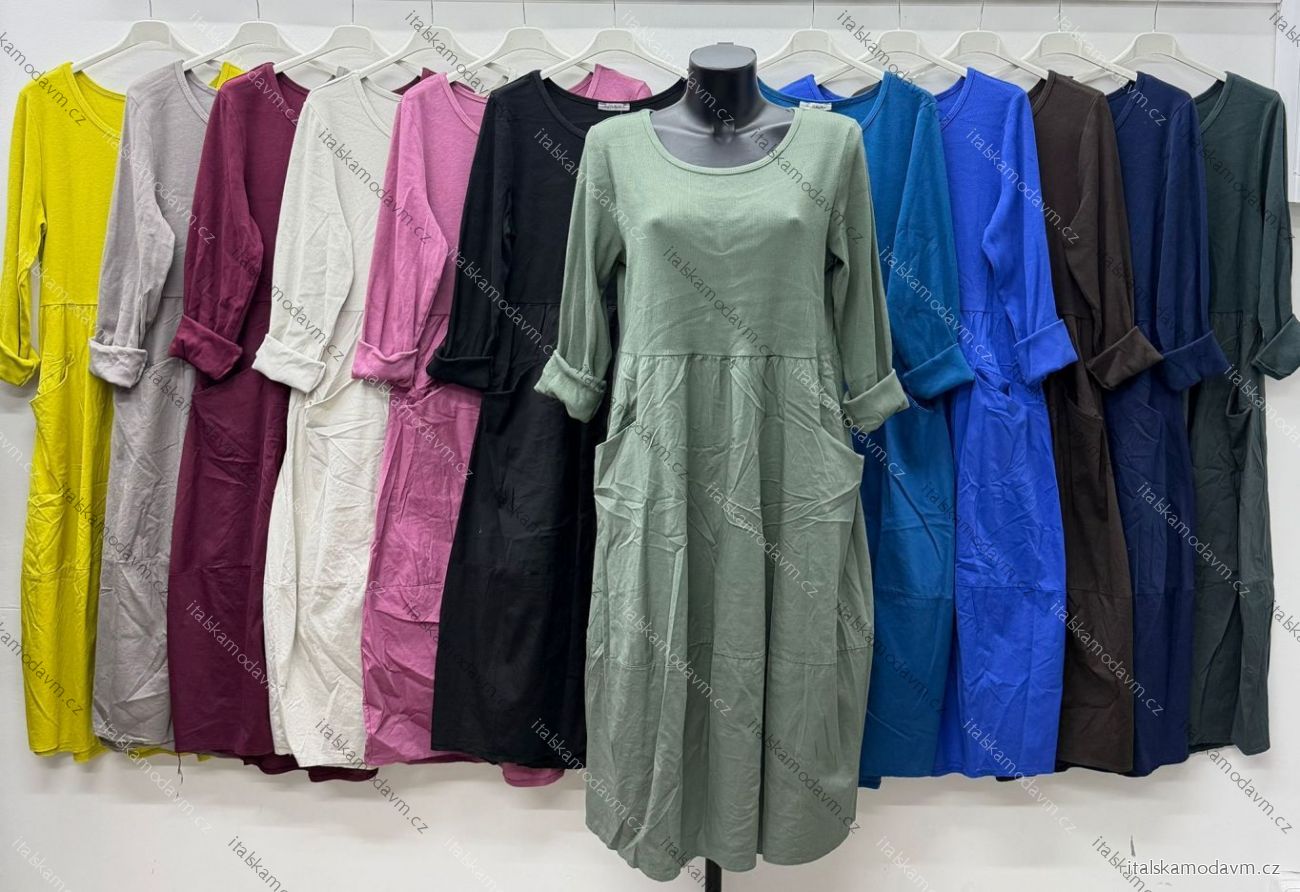 Šaty voľnočasové s vreckami dlhý rukáv dámske nadrozmer (46/48/50 ONE SIZE) TALIANSKA MÓDA IM425887