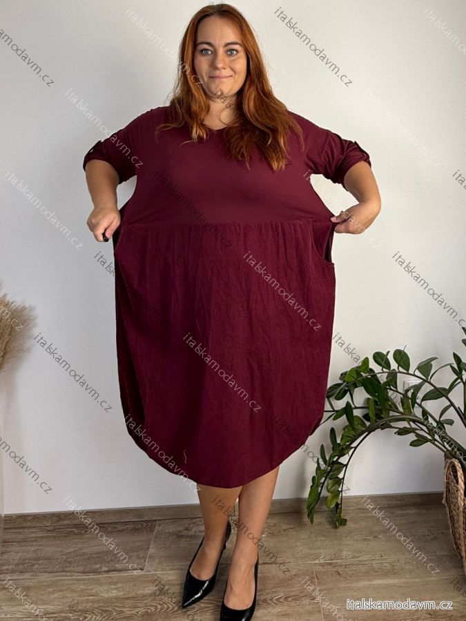 Šaty volnočasové teplé dlouhý rukáv dámské nadrozměr WENDY (50/52/54 ONE SIZE) ITALSKÁ MÓDA IM425540