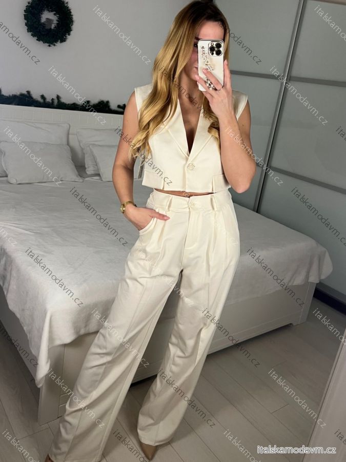 Souprava elegantní kalhoty dlouhé a vesta bez rukávu dámská (S/M ONE SIZE) IMM24M35555/DU - béžová smetanová - S/M