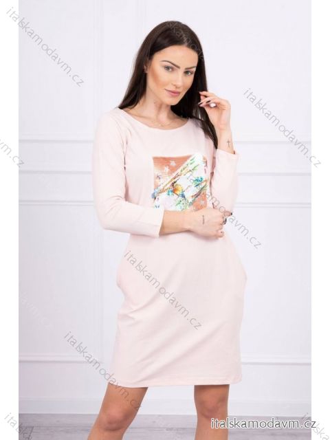 Predstavujeme vám módne šaty. Šaty majú na prednej strane šitú grafiku z flitrov. Šaty majú vrecká. Ideálna ponuka pre každý deň. Šaty sú vyrobené z vysoko kvalitného materiálu. Veľkosť je univerzálna a bude vhodná pre dámy, ktoré nosia veľkosti S, M alebo L.