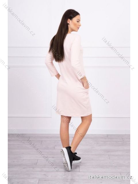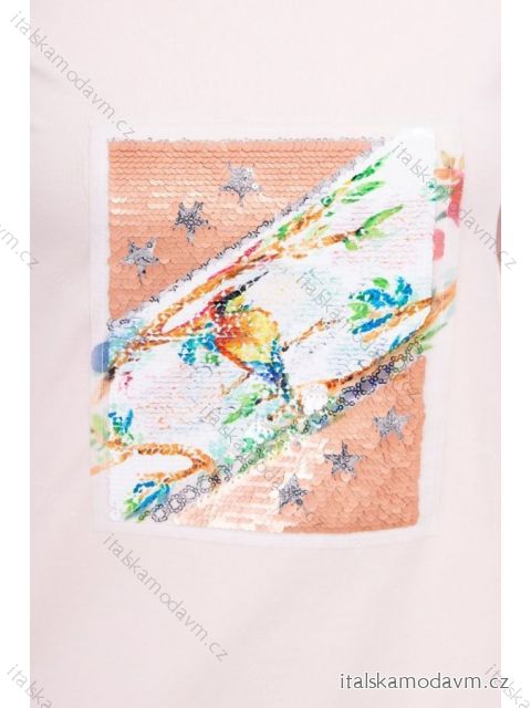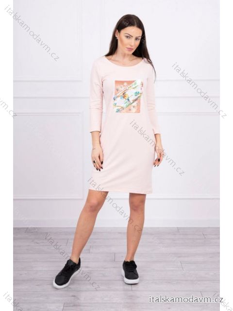 (5446) > Šaty klasik krátky rukáv (119) > Sukienka z grafiką 3D Bird pudrowy róż