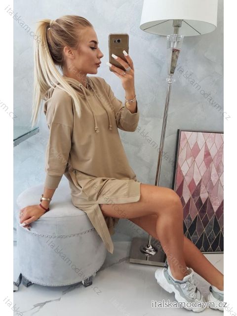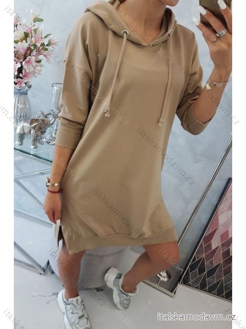 Představujeme vám pohodlné šaty s kapucí. Šaty mají kapsy a delší záda. Perfektní nabídka pro každou dámu. Šaty jsou vyrobeny z vysoce kvalitního materiálu. Velikost je univerzální a bude vhodná pro dámy na sobě velikosti S, M nebo L.