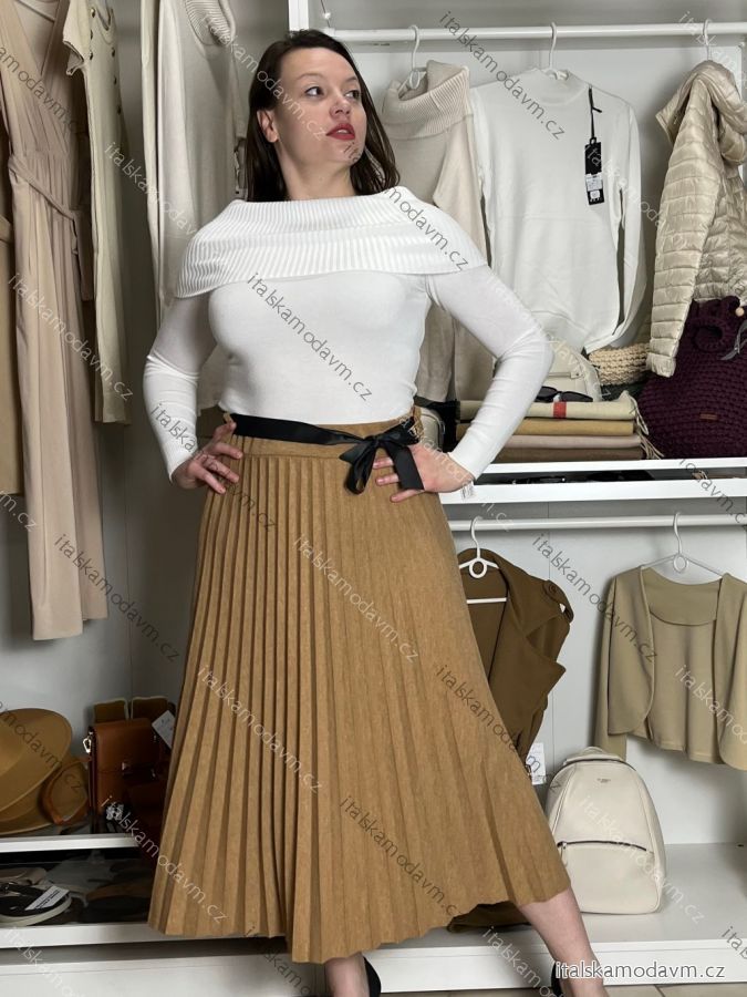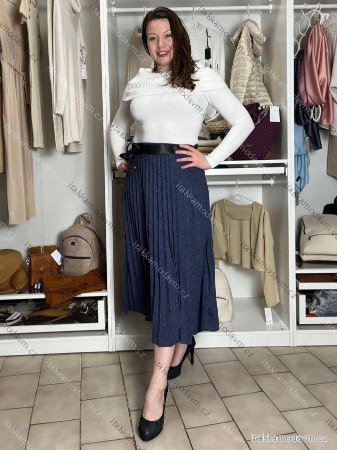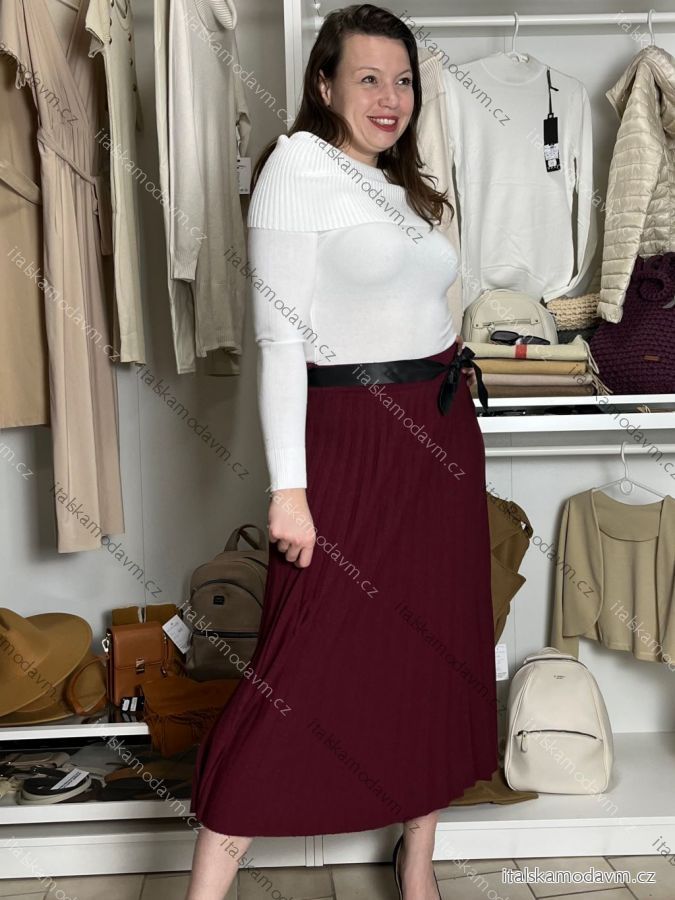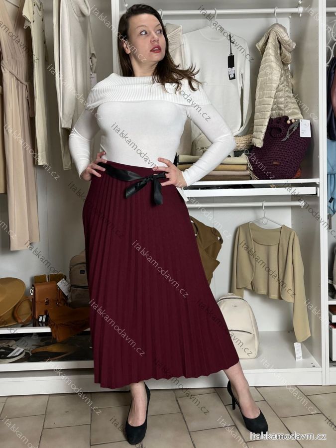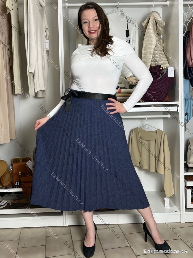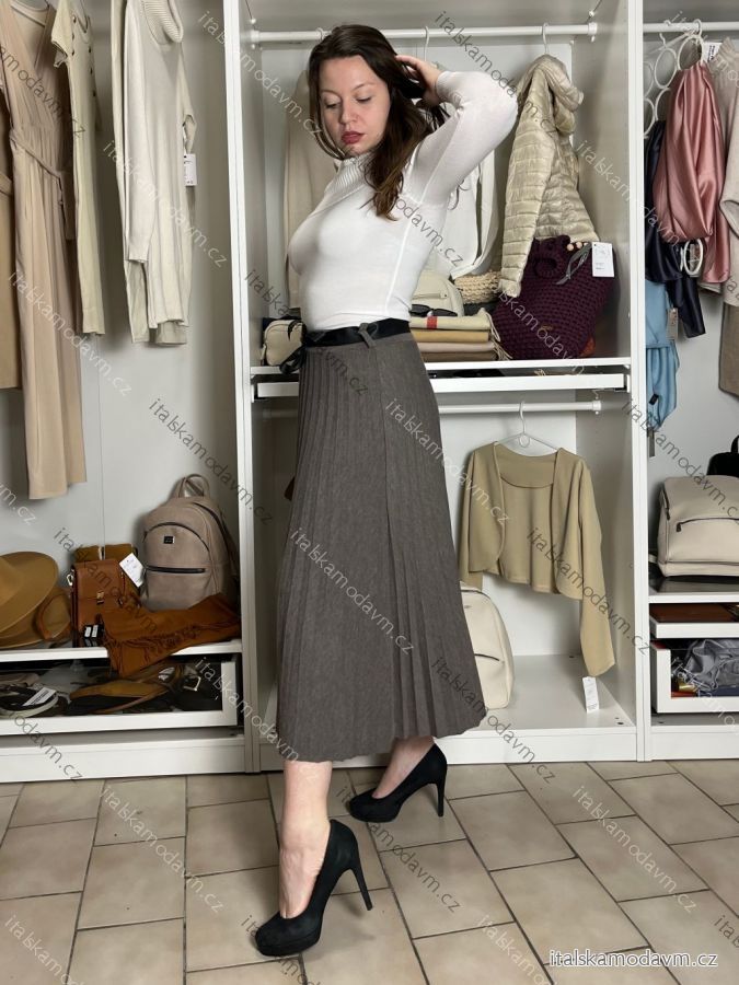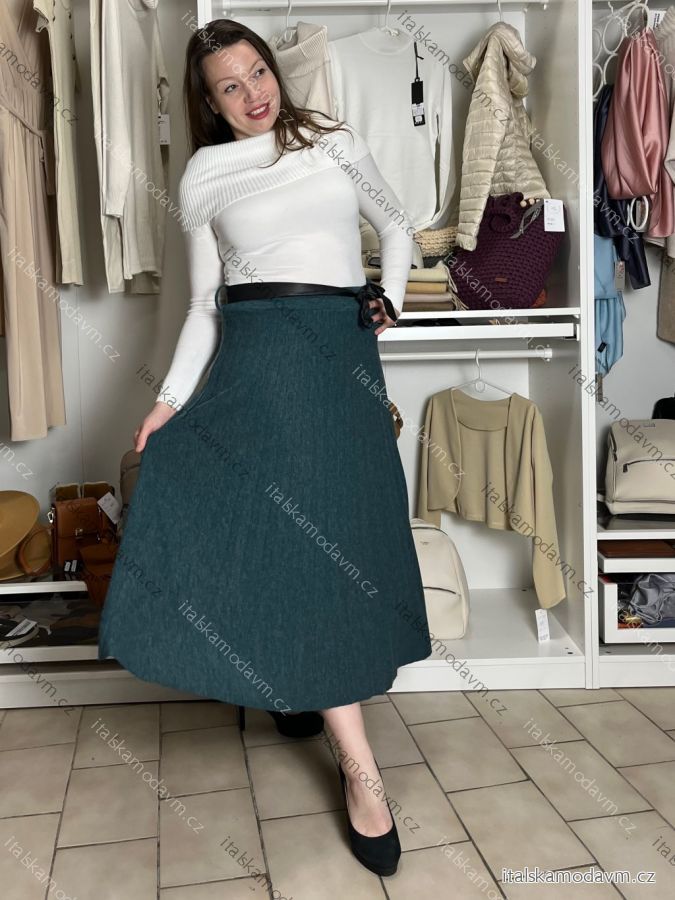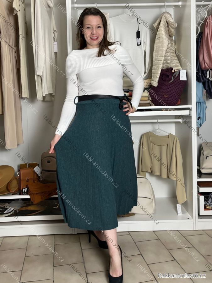 Sukňa dlhá teplá skladaná s opaskom dámska (S/M/L ONE SIZE) TALIANSKA MÓDA IMC24594/DU S/M/L zelená smaragdová