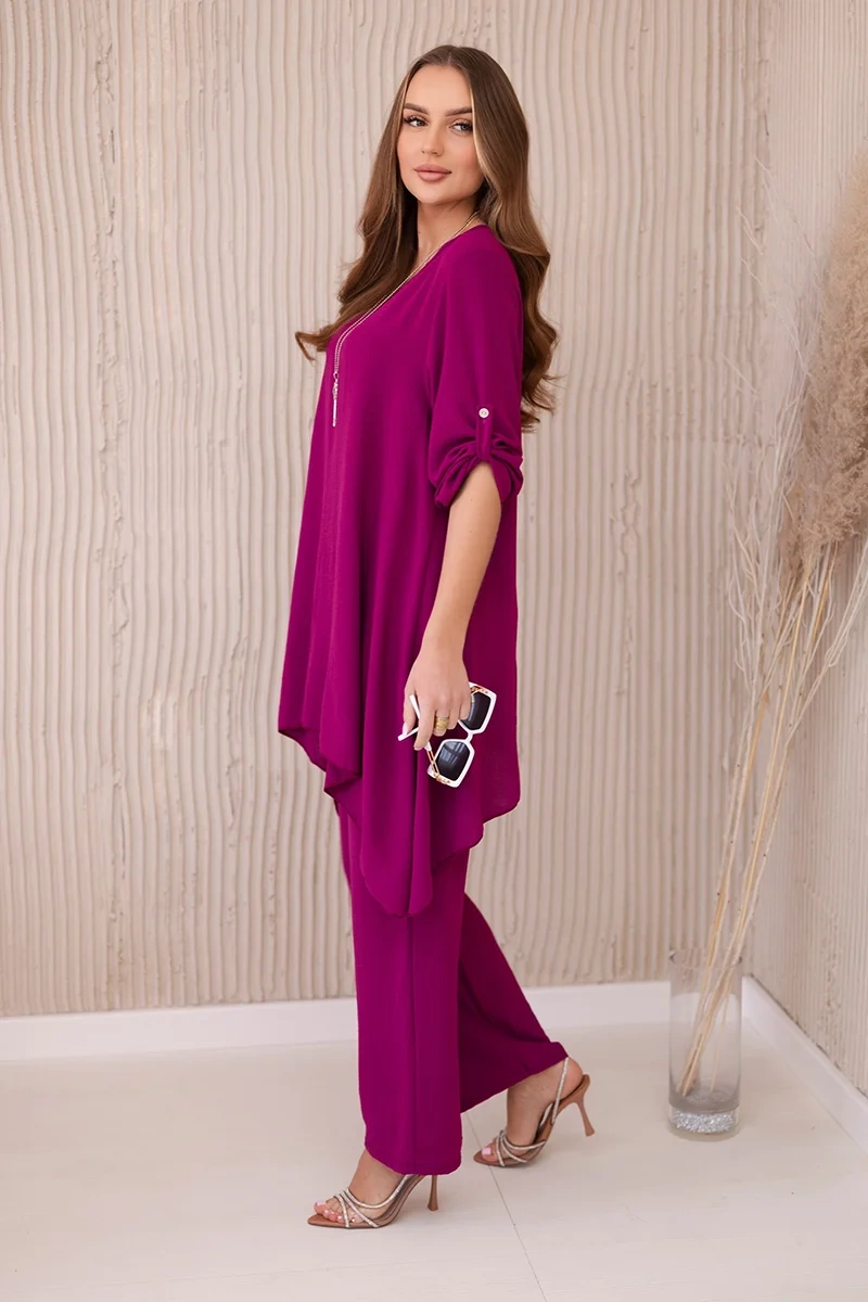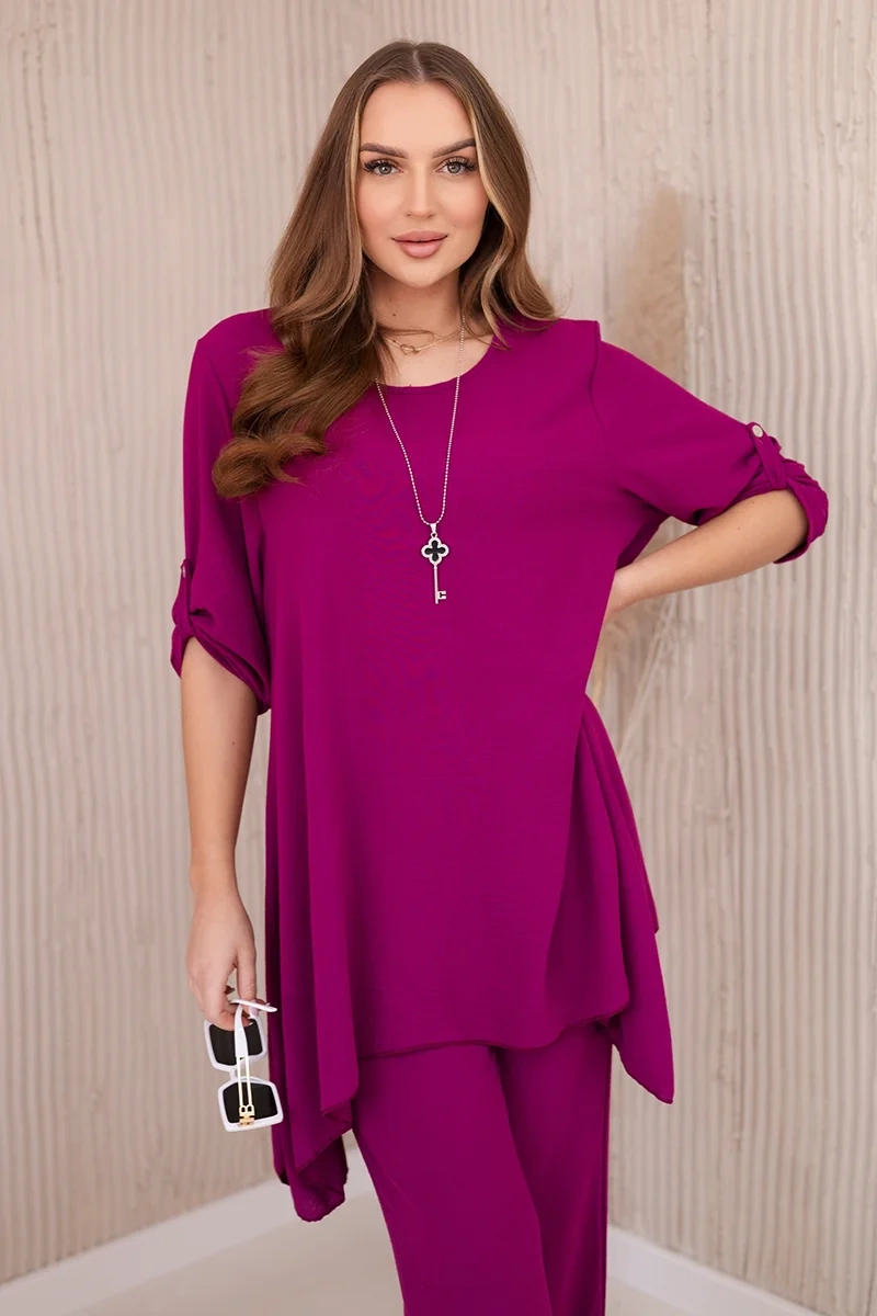 Súprava slivkovej blúzky + nohavíc s príveskom