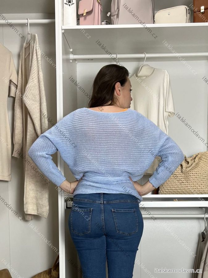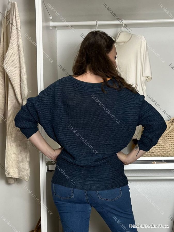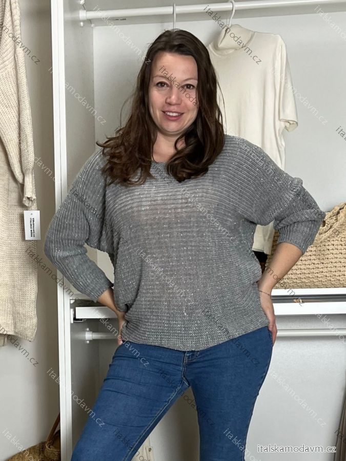 Sveter pletený dlhý rukáv netopierí dámsky, prepletaný lesklou niťou