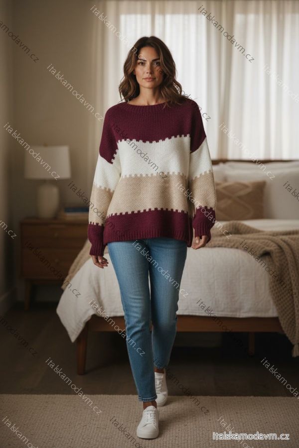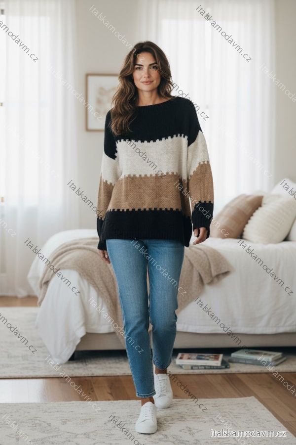 Sveter pletený dlhý rukáv dámsky nadrozmer (46/48/50 ONE SIZE) TALIANSKA MÓDA IMD25258