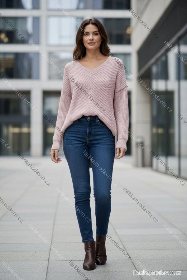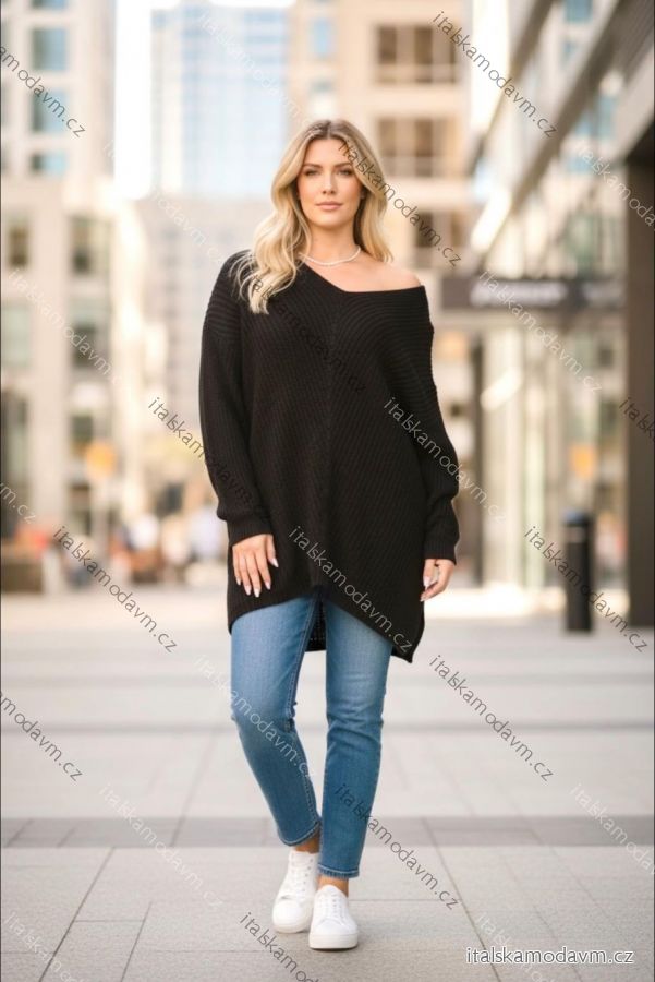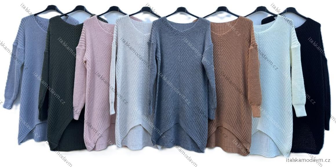 Sveter predĺžený pletený dlhý rukáv dámsky nadrozmer (48/50/52 ONE SIZE) TALIANSKA MÓDA IMD25253