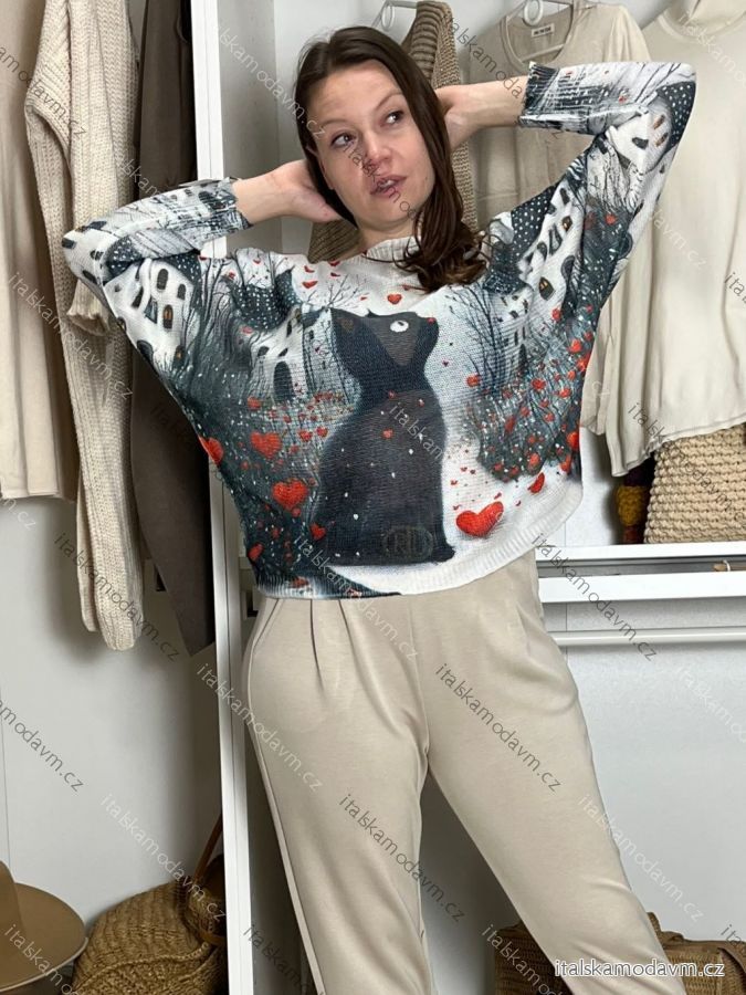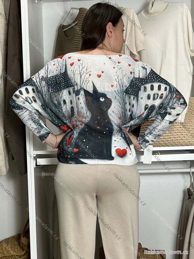 ZBOŽÍ (22747) > Sveter tenký dlhý rukáv dámsky CAT (M/L/XL ONE SIZE) TALIANSKA MÓDA IMSM251137/DU M/L/XL biela