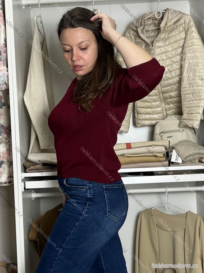 Sveter úpletový 3/4 dlhý rukáv dámske (S/M/L ONE SIZE) TALIANSKA MÓDA IM5252422/DU M / L vínová