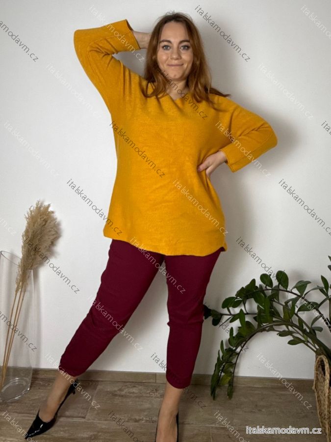 Sveter úpletový dlhý rukáv dámsky nadrozmer (54/56/58 ONE SIZE) TALIANSKA MÓDA IMC25366/DUR 54/56/58 žlutá okrová