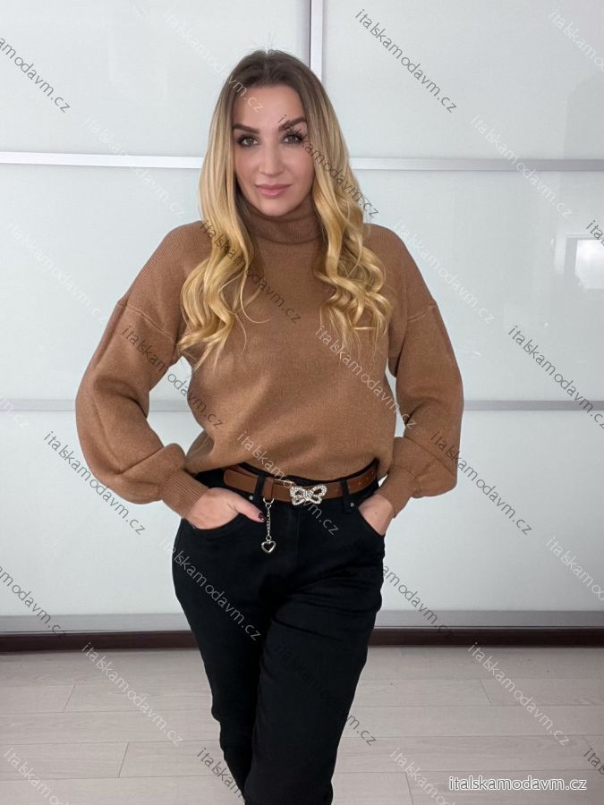 Sveter úpletový s rolákom dlhý rukáv dámsky (S/M/L ONE SIZE) TALIANSKA MÓDA IMC25560/DU S/M/L hnedá