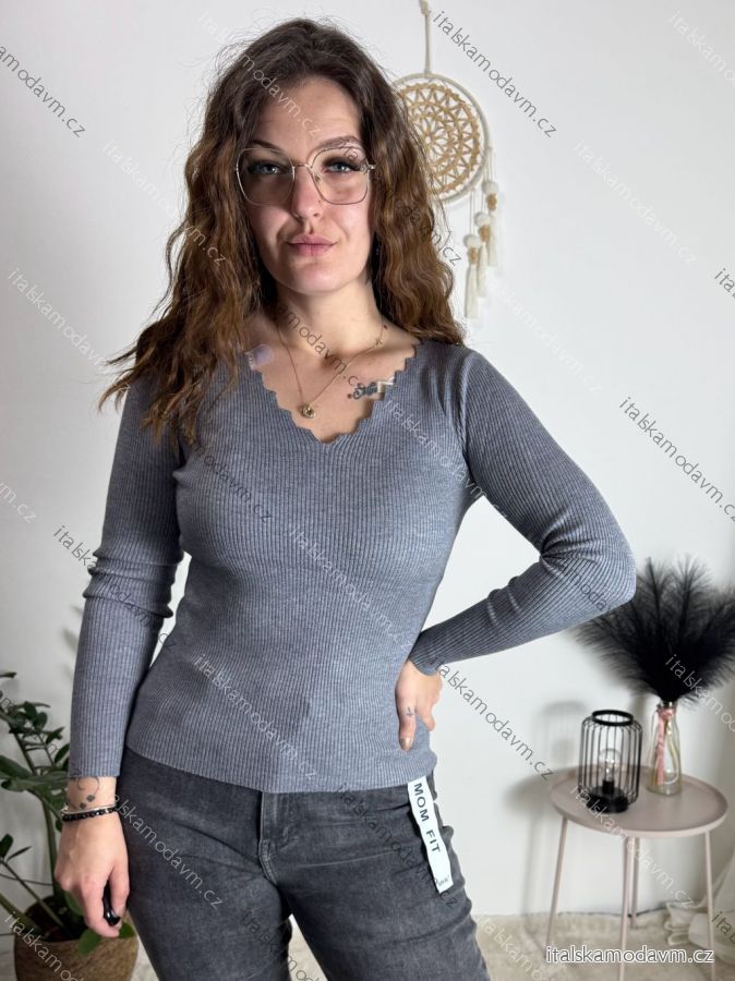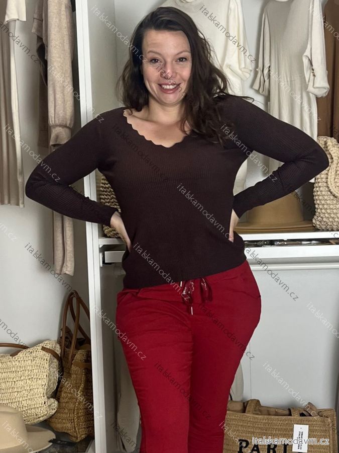 Sveter úpletový tenký dlhý rukáv dámsky FREA (S/M/L ONE SIZE) TALIANSKA MÓDA IMD25150/DR tmavo hnedá S/M/L