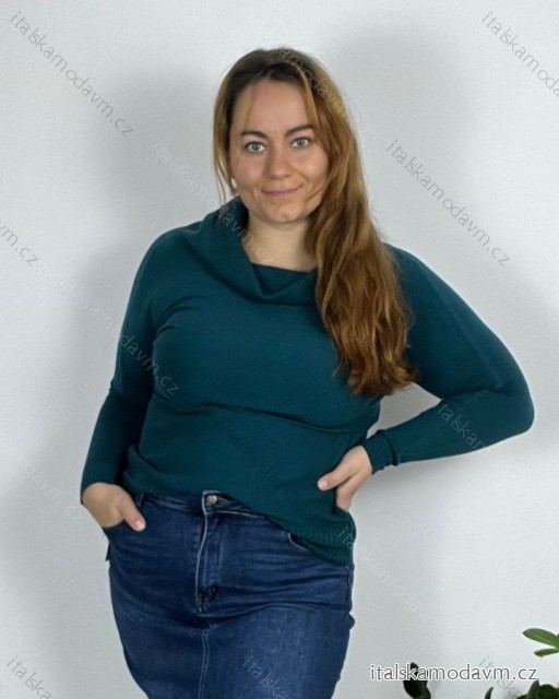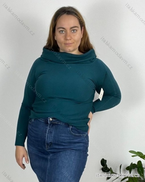 Svetr dlouhý rukáv dámský nadrozměr (42/44/46 ONE SIZE) TALIANSKA MóDA IMSM24ZS8173/DR 42/44 svetle petrolejová