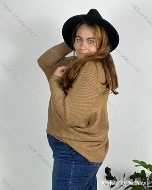 Svetr dlouhý s rolákem rukáv dámský nadrozměr (54/56/58 ONE SIZE) TALIANSKA MóDA IMSM24VERONA/DR 56/58 hnedá