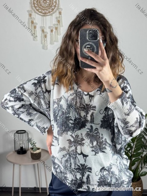 Svetr oversize krátký rukáv tenký s potiskem dámský (M/L ONE SIZE) ITALSKá MóDA IMSM24OAZA/DUR - bílá - M/L