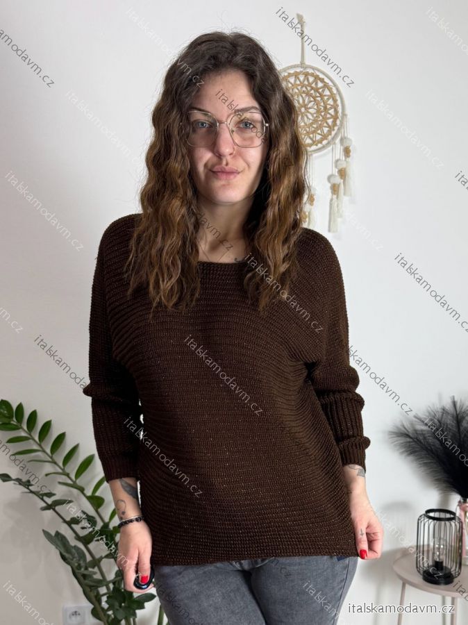 Svetr pletený dlouhý rukáv netopýří dámský, proplétaný lesklou nití
