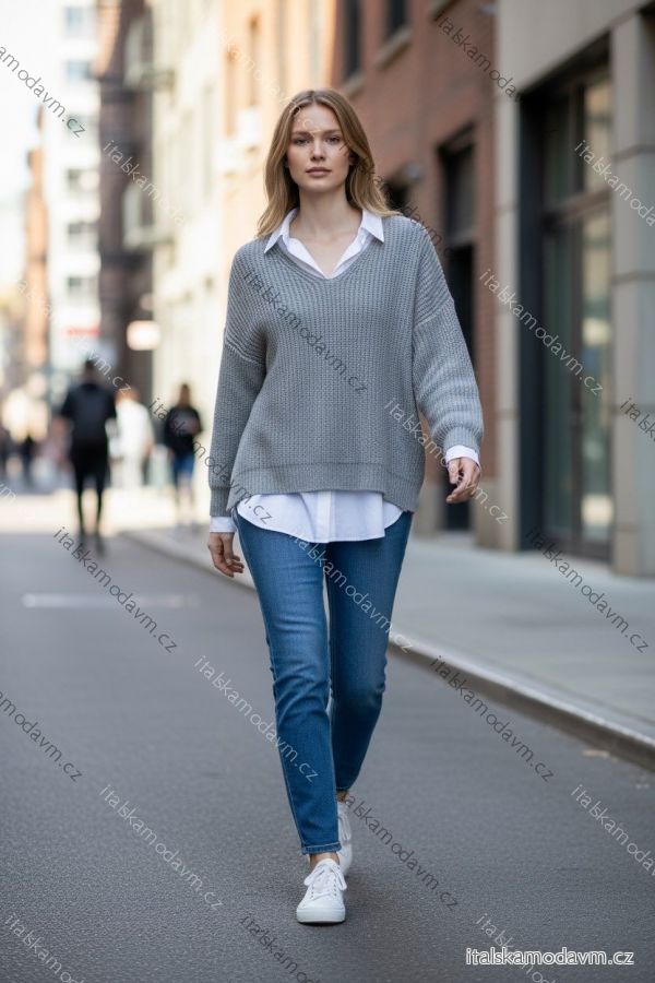 Svetr pletený dlouhý rukáv dámský nadrozměr (50/52/54 ONE SIZE) ITALSKÁ MÓDA IMD25252