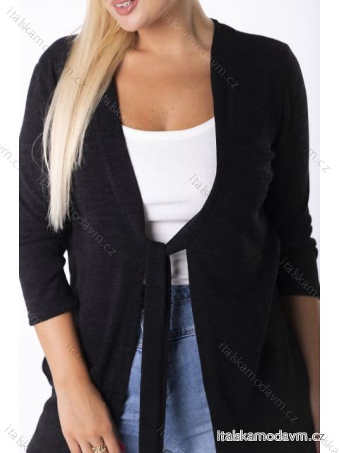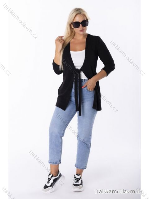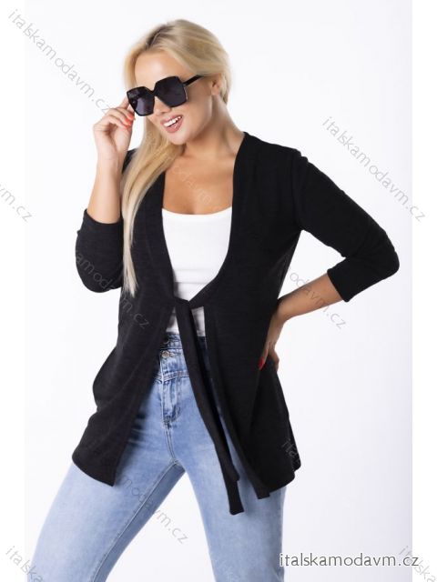 Jemná pelerína, vyrobená z jemné pleteniny s jemnou vazbou. Model jednoduchého střihu s vázáním v pase. Štěrbinové kapsy ve výšce boků. Svetr bude dobrou volbou pro běžné velikosti a velikosti plus. Model lze použít v každodenních stylizacích.