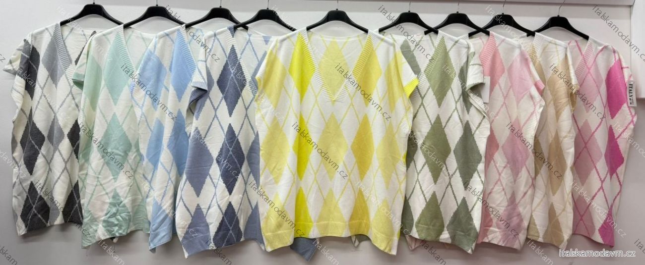 Svetr tenký krátký rukáv dámský nadrozměr (54/56/58 ONE SIZE) ITALSKÁ MÓDA IM426041