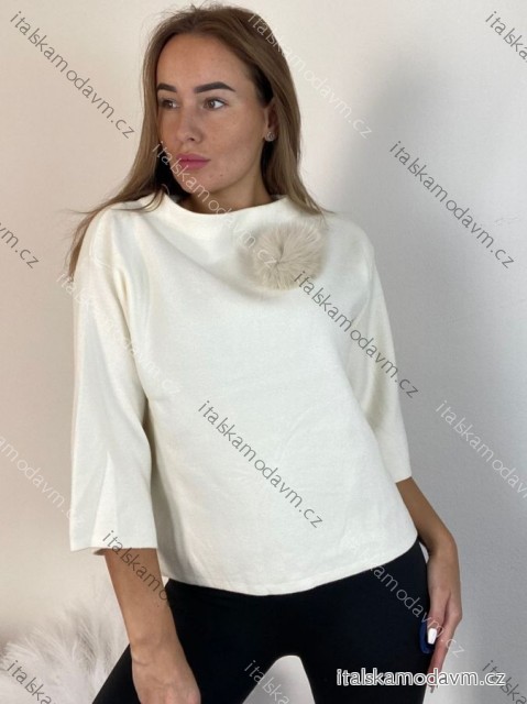 Svetr úpletový 3/4 dlouhý rukáv dámský (S/M/L ONE SIZE) ITALSKÁ MÓDA IMM24M5986-1/DU - hnědá - S/M/L