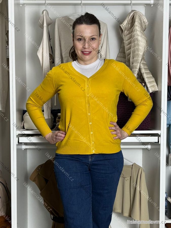 Svetr úpletový na knoflíky dlouhý rukáv dámský SANDY (S/M/L) ITALSKÁ MODA IMM255818-18/DUR S/M/L žlutá hořčicová