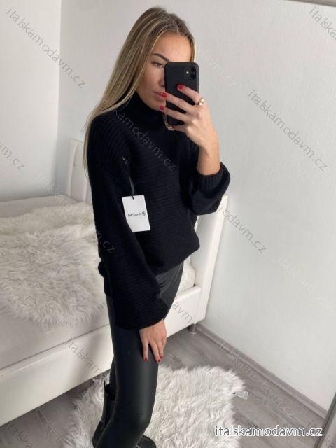 Svetr úpletový oversize s rolákem dlouhý rukáv dámský (S/M/L ONE SIZE) ITALSKá MóDA IM4221262/DR M/L Černá