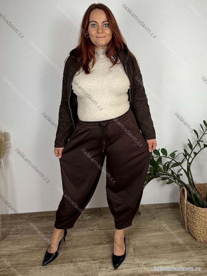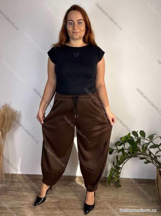 Tepláky elegantné dámske nadrozmer LOLA (40/42/44 ONE SIZE) TALIANSKA MÓDA IM4251145/DU hnedá