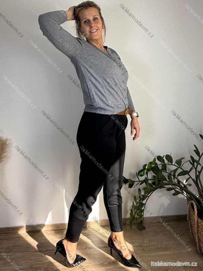 Tepláky/Kalhoty elegantné s opaskom dámske nadrozmer LUCIA (40/42/44 ONE SIZE) TALIANSKA MÓDA IM425060/DUR čierna