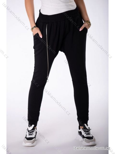 Tepláky vyrobené z kvalitnej bavlny s prímesou elastanu. Spadnuté rozkroky a vrecká v oblasti bokov. Asymetricky všitý zips vpredu mu dodáva zaujímavý vzhľad. Zúžené nohy, ozdobené prúžkom od kolien. Model, ktorý sa bude používať v každodenných štylizáciách so športovou farbou.