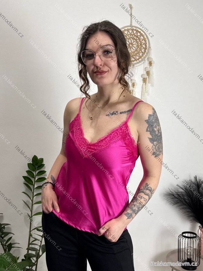 Tílko letní saténové s krajkou dámské (S/M ONE SIZE) ITALSKÁ MÓDA IMM23HG3352 S/M tmavě růžová