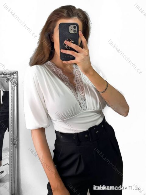 Top s krajkou krátký rukáv dámský (S/M ONE SIZE) ITALSKÁ MÓDA IMM2327419/DU S/M Černá