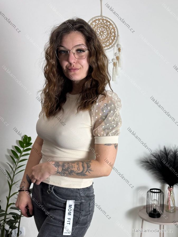 Tričko elegantný krátky rukáv dámske (S/M ONE SIZE) TALIANSKA MÓDA IMM24M16835