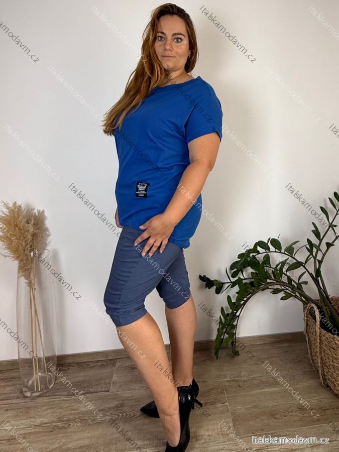 Tričko predĺžené oversize krátky rukáv dámska nadrozmer (2XL/3XL/4XL ONE SIZE) TALIANSKA MÓDA IMC22PIERA/DUR kr. modrá 2XL/3XL