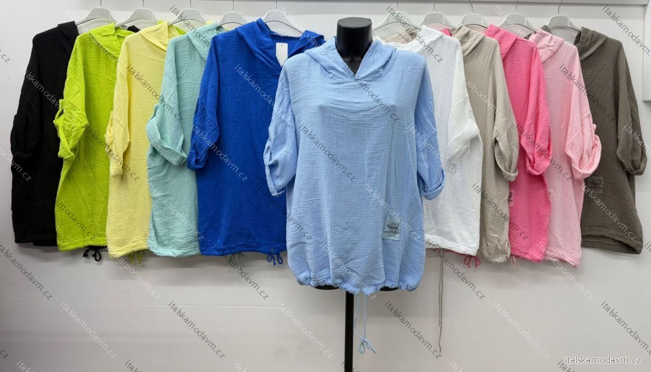 ZBOŽÍ (22177) > Tričko stahovací s kapucí 3/4 dlouhý rukáv dámské nadrozměr (50/52/54 ONE SIZE) ITALSKÁ MÓDA IM426107