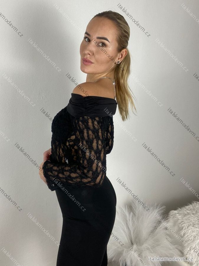 Tunika carmen krajková dlhý rukáv dámska (S/M ONE SIZE) TALIANSKA MÓDA IMM2645532/DUR S/M/L čierna