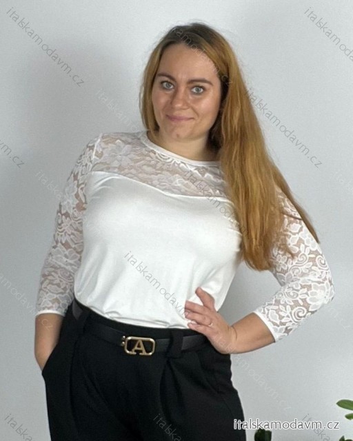 Tunika elegantní dlouhý rukáv dámská nadrozměr (44-54 ONE SIZE) POLSKÁ MÓDA PMFF24SALMA/DR 48 bílá