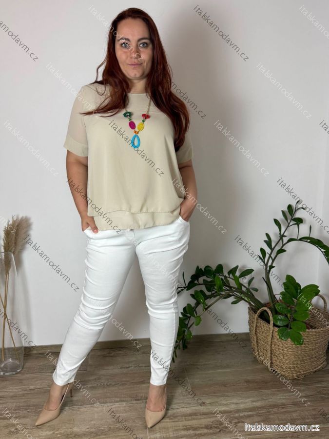 Tunika elegantní s přívěskem krátky rukáv dámska nadrozmer (46/48/50 ONE SIZE) TALIANSKA MÓDA IMSM25MILANO/DU 48/50 béžová