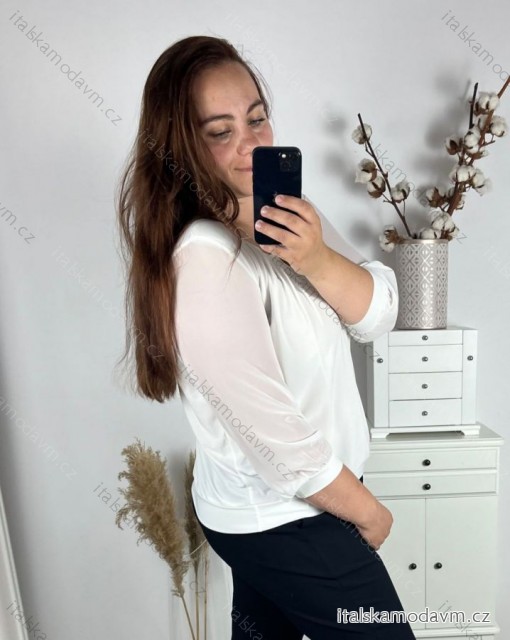 ZBOŽÍ (22895) > oblečenie dámske (18241) > Topy, tričká, tuniky a tielka (2459) > Tunika halecka 3/4 rukáv nadrozmerné (L-4XL) POĽSKÁ MÓDA PMF24JELA/DUR - biela - 4XL