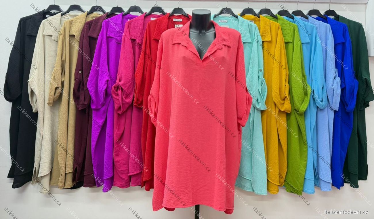 ZBOŽÍ (21940) > Tunika košeľová 3/4 dlhý rukáv dámska nadrozmer (54/56/58 ONE SIZE) TALIANSKA MÓDA IM426042