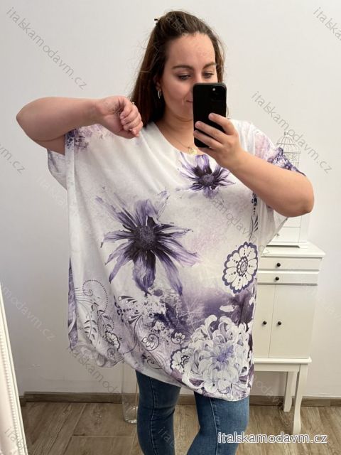 Tunika krátky rukáv dámska nadrozmer (2XL /3XL/4XLONE SIZE) TALIANSKA MóDA IM423FLOWER
