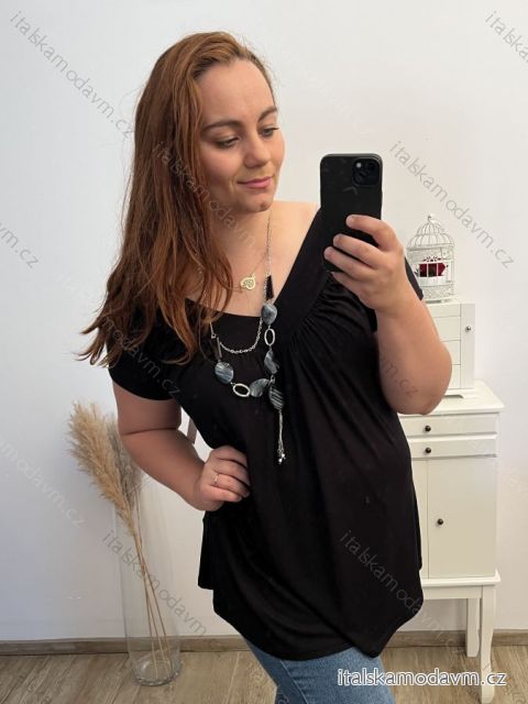 Tunika krátký rukáv s přívěskem dámská nadrozměr (3XL/4XL/5XL ONE SIZE) ITALSKÁ MÓDA FMB23BRECET/DR 3XL/4XL bílá