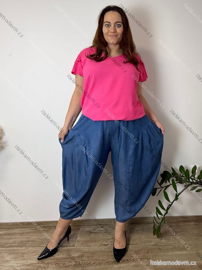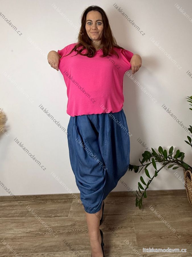 Tunika letní krátký rukáv dámská nadrozměr SYNDY (50/52/54 ONE SIZE) ITALSKÁ MÓDA IM425401/DUR tm. růžová 50/52/54