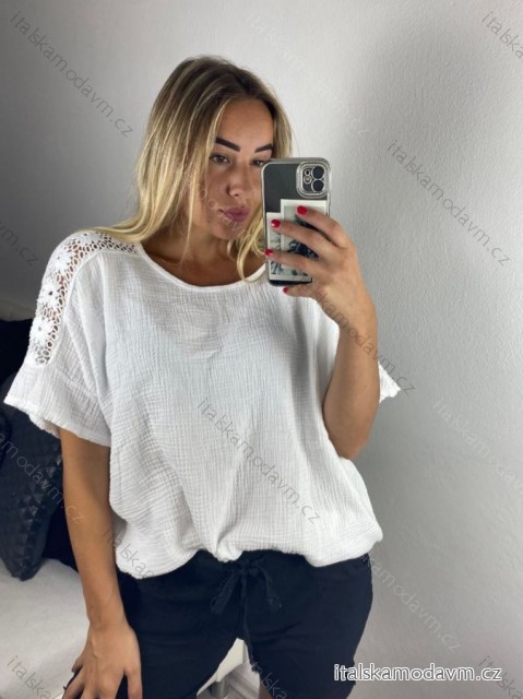 Tunika mušelínová krátký rukáv dámská nadrozměr (48/50 ONE SIZE) ITALSKá MODA IMSM24052/DU
