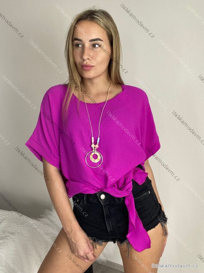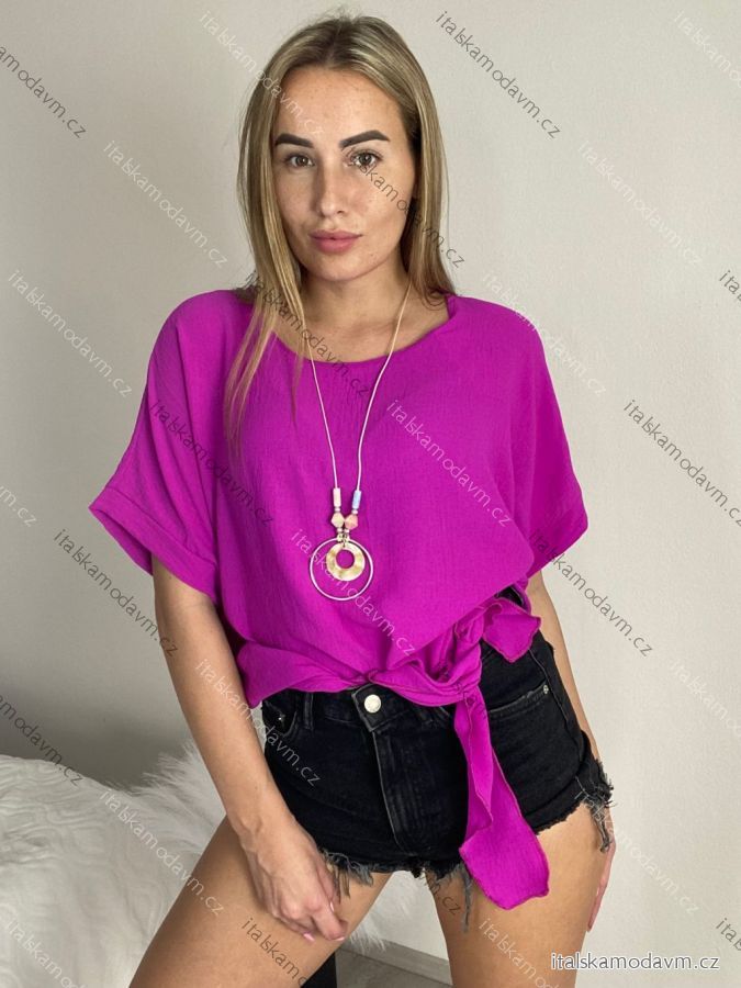 Tunika s přívěskem krátký rukáv dámská nadrozměr (48/50/52 ONE SIZE) ITALSKÁ MÓDA IM425031/DUR mintová 48/50