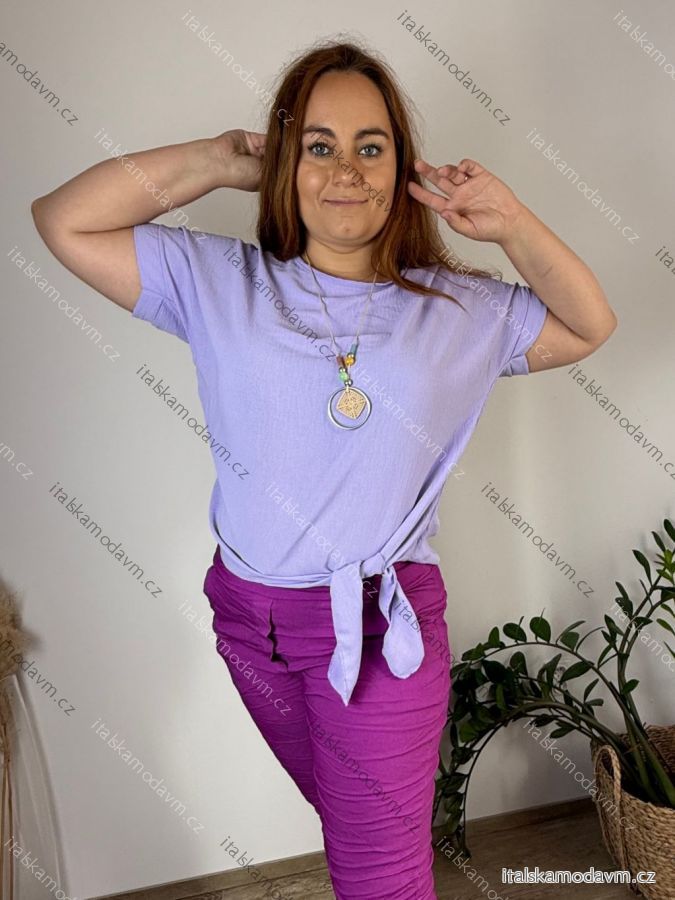 Tunika s přívěskem krátký rukáv dámská nadrozměr Pegy (48/50/52 ONE SIZE) ITALSKÁ MÓDA IM425031/DUR sv. fialová 48/50