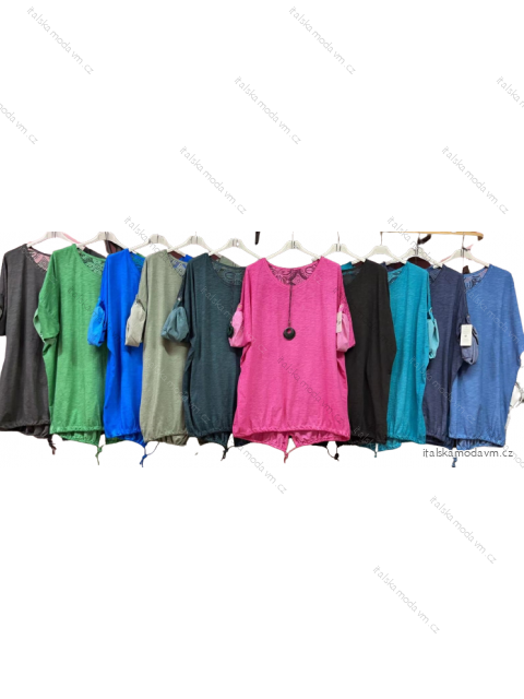ZBOŽÍ (21605) > oblečenie dámske (17435) > Topy, tričká, tuniky a tielka (2342) > tuniky (716) > Tuniky krátky rukáv (294) > Tunika s príveskom krátky rukáv dámska nadrozmer (4XL/5XL ONE SIZE) TALIANSKA MODA IM422483LH/DR2 kráľovská modrá