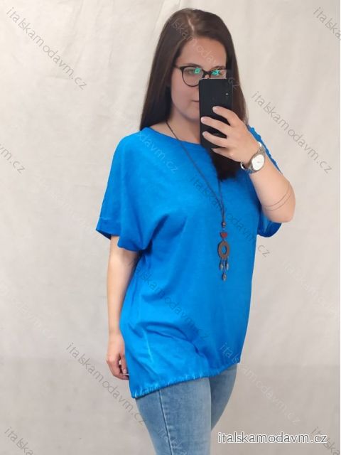 Tunika s príveskom krátky rukáv dámska nadrozmer (4XL/5XL ONE SIZE) TALIANSKA MODA IM422483LH/DR2 kráľovská modrá