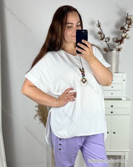 ZBOŽÍ (21975) > oblečenie dámske (17901) > Topy, tričká, tuniky a tielka (2333) > Tunika s príveskom krátky rukáv dámska nadrozmer (3XL/4XL ONE SIZE) TALIANSKA MÓDA IMWQ24079/DUR - biela - 3XL / 4XL