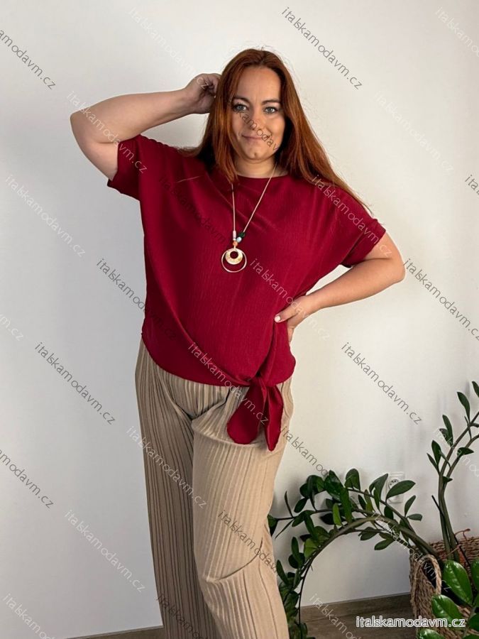Tunika s príveskom krátky rukáv dámska nadrozmer (4850/52 ONE SIZE) TALIANSKA MÓDA IM425031/DUR vínová 48/50