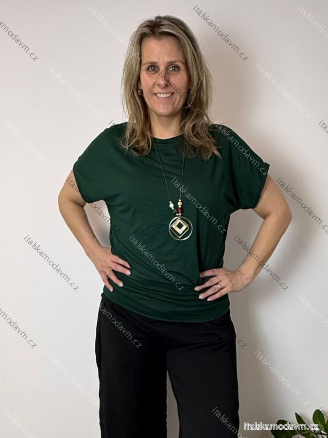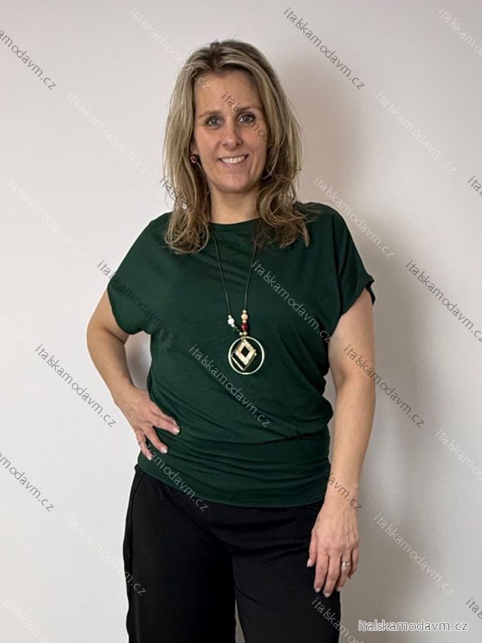 Tunika s príveskom krátky rukáv dámske nadrozmer VIVIEN (40/42/44 ONE SIZE) TALIANSKA MÓDA IM426022/DU tmavo smaragdová